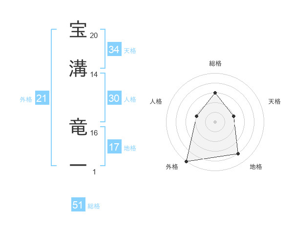 宝溝 竜一さんの総格は51画の3点!