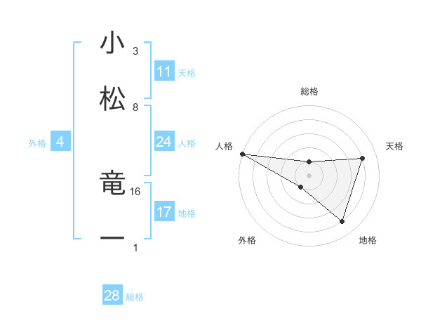 小松 竜一さんの地格は17画の4点!