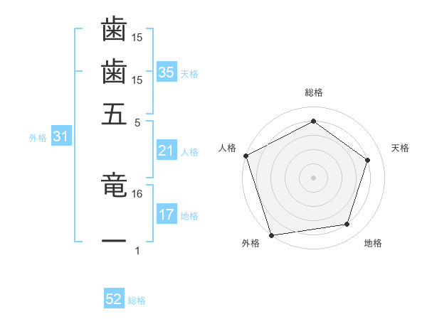 歯歯五 竜一さんの総格は52画の4点!