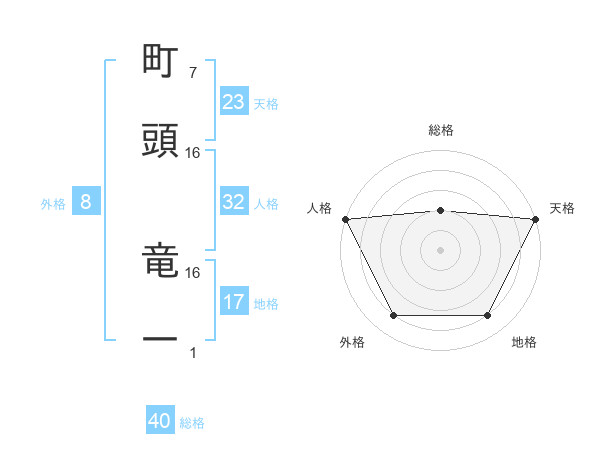 町頭 竜一さんを姓名の画数から五運を鑑定