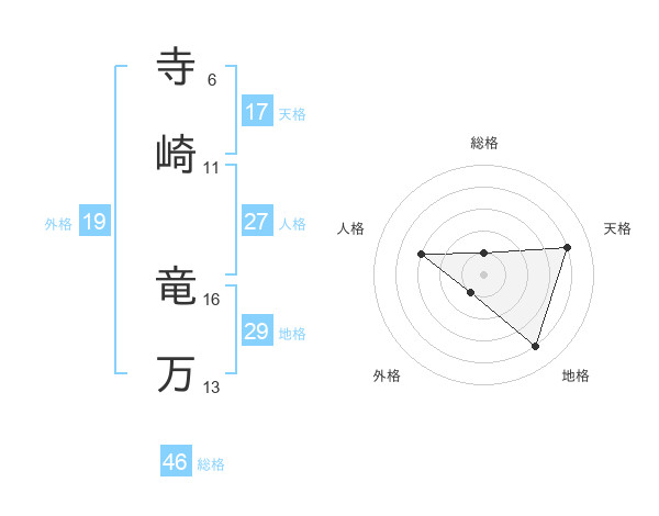 寺崎 竜万さんを姓名の画数から五運を鑑定
