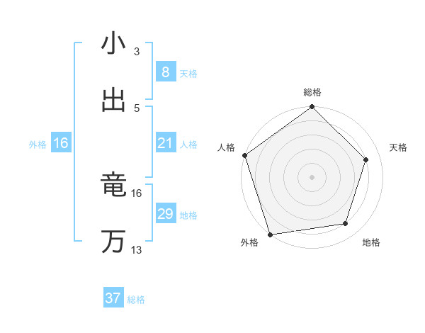 小出 竜万さんの総格は37画の5点!