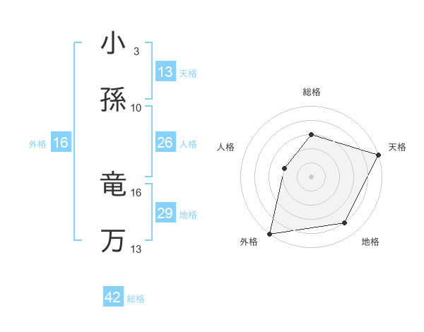 小孫 竜万さんを姓名の画数から五運を鑑定