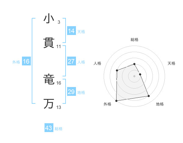 小貫 竜万さんの総格は43画の2点!