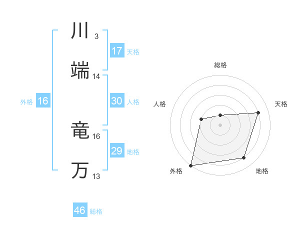 川端 竜万さんの総格は46画の1点!