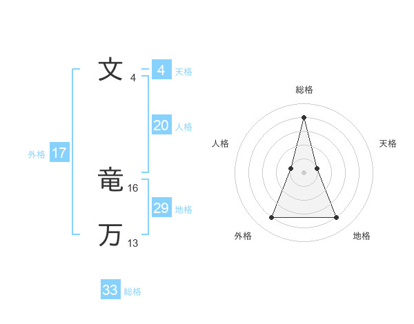 文 竜万さんの総格は33画の4点!