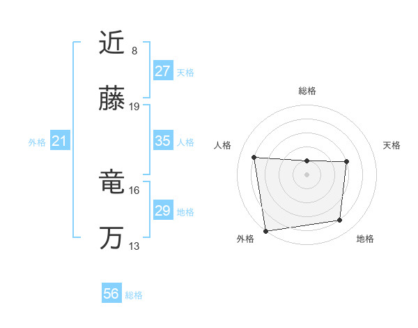 近藤 竜万さんを姓名の画数から五運を鑑定