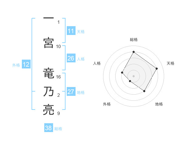 一宮 竜乃亮さんを姓名の画数から五運を鑑定