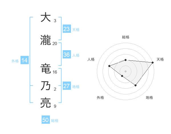 大瀧 竜乃亮さんを姓名の画数から五運を鑑定