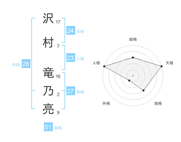 沢村 竜乃亮さんを姓名の画数から五運を鑑定