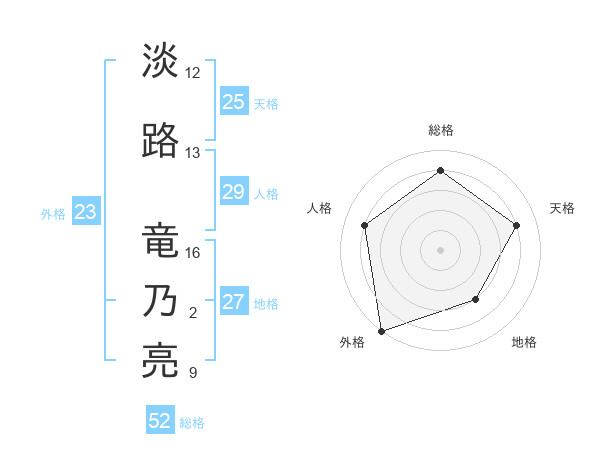 淡路 竜乃亮さんの総格は52画の4点!