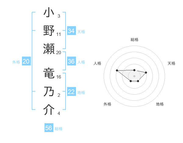小野瀬 竜乃介さんを姓名の画数から五運を鑑定
