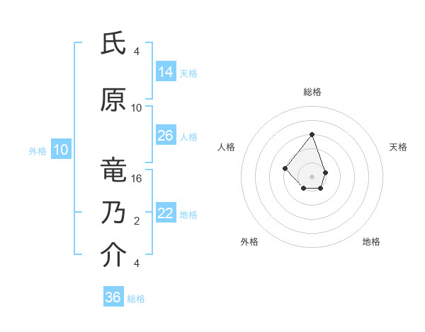 氏原 竜乃介さんの天格は14画の1点!