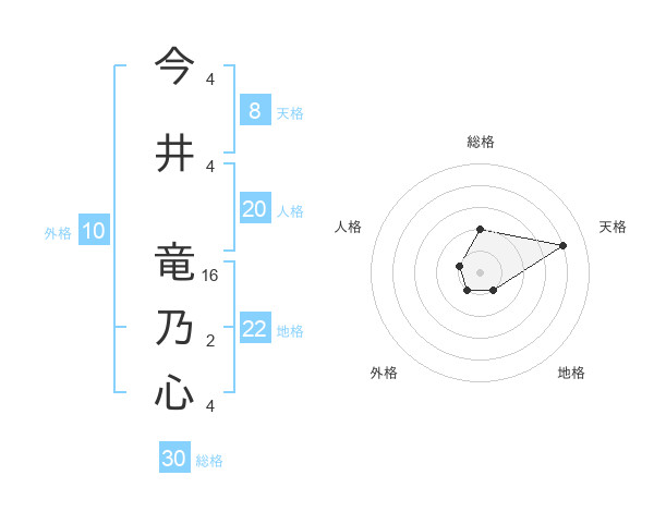 今井 竜乃心さんを姓名の画数から五運を鑑定