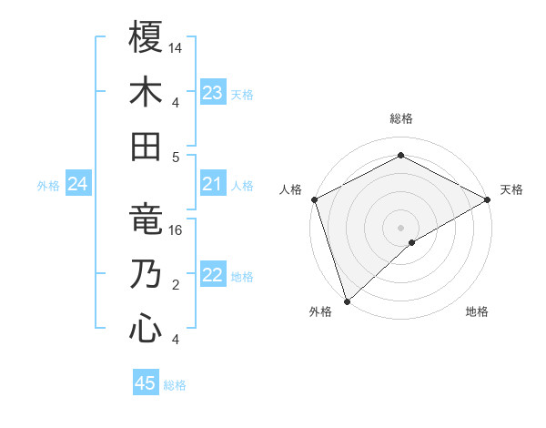 榎木田 竜乃心さんの天格は23画の5点!