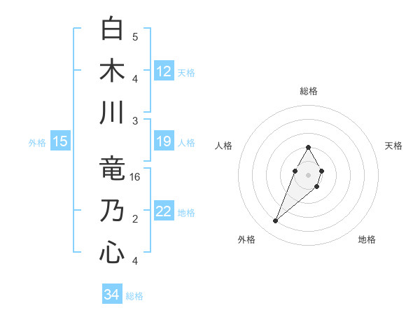 白木川 竜乃心さんの地格は22画の1点!