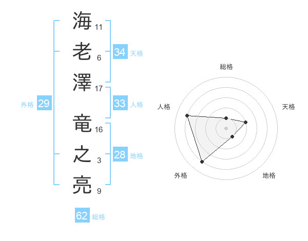 海老澤 竜之亮さんの天格は34画の2点!