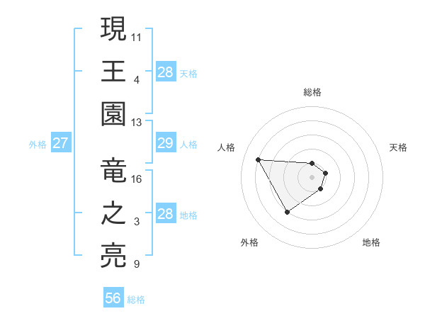 現王園 竜之亮さんの地格は28画の1点!