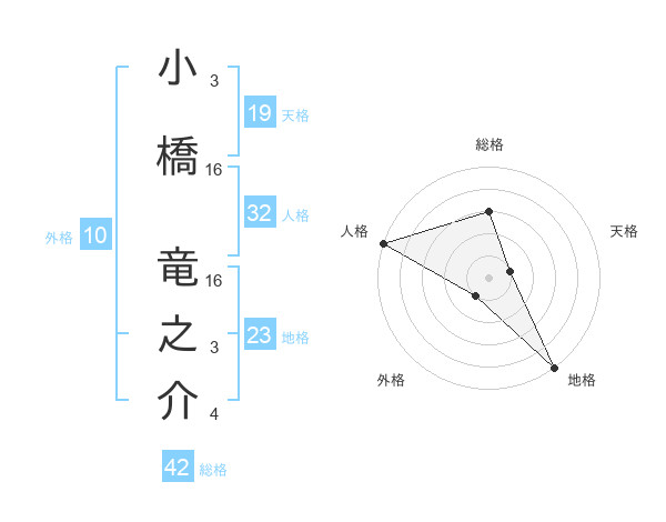 小橋 竜之介さんの地格は23画の5点!