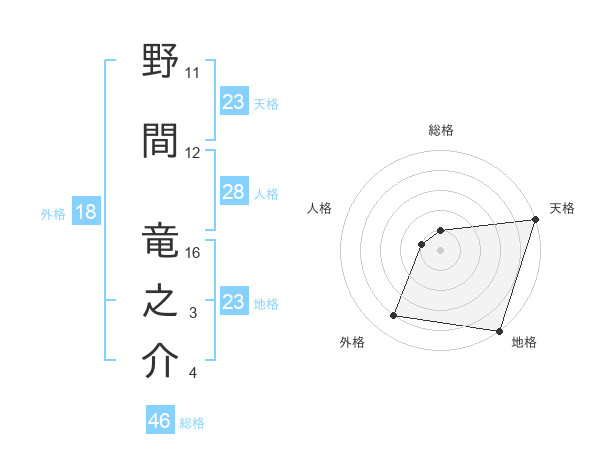 野間 竜之介さんを姓名の画数から五運を鑑定