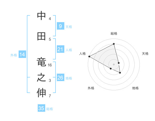 中田 竜之伸さんを姓名の画数から五運を鑑定