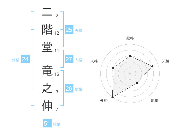 二階堂 竜之伸さんを姓名の画数から五運を鑑定