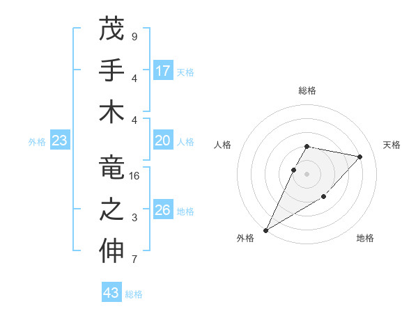 茂手木 竜之伸さんを姓名の画数から五運を鑑定
