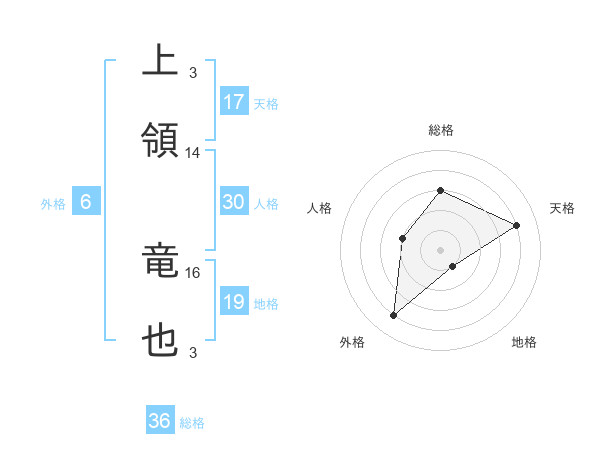 上領 竜也さんの天格は17画の4点!