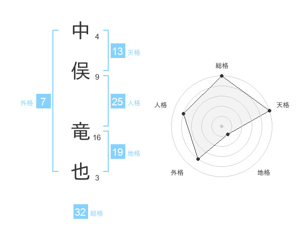 中俣 竜也さんの総格は32画の5点!
