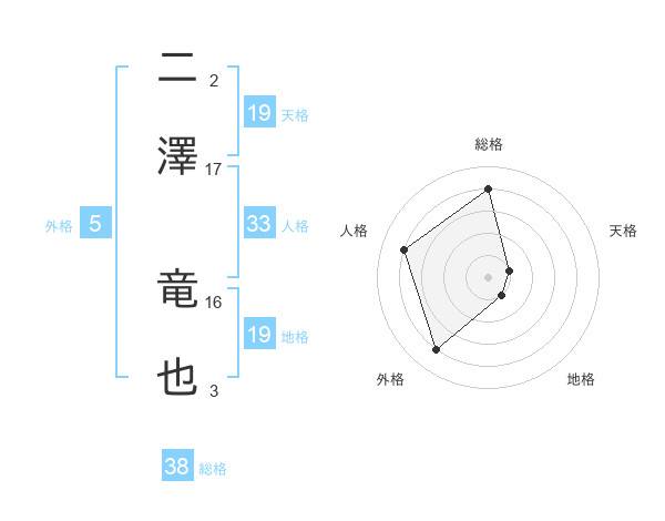 二澤 竜也さんを姓名の画数から五運を鑑定