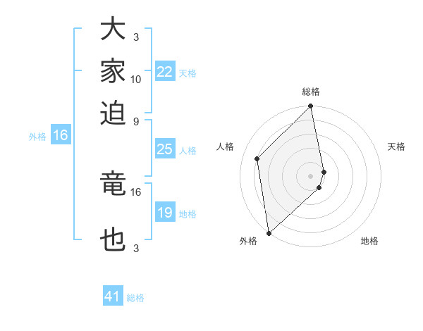 大家迫 竜也さんの外格は16画の5点!