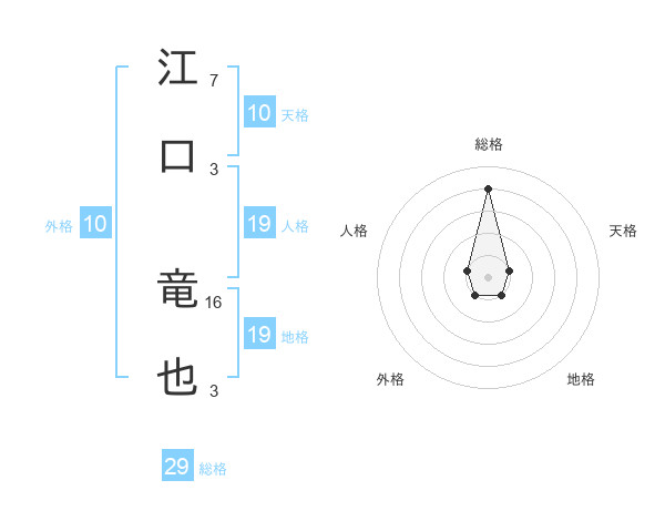 江口 竜也さんの総格は29画の4点!