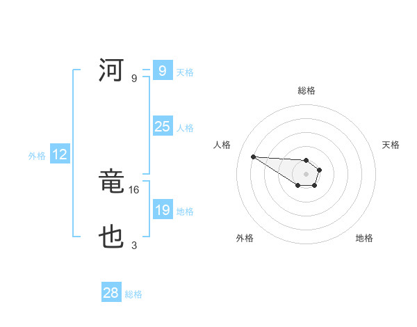 河 竜也さんの総格は28画の1点!