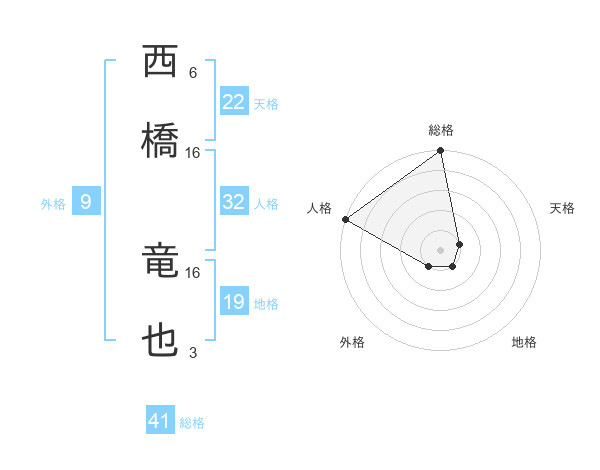 西橋 竜也さんを姓名の画数から五運を鑑定