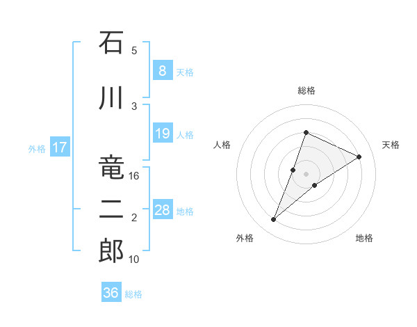 石川 竜二郎さんを姓名の画数から五運を鑑定
