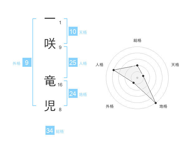 一咲 竜児さんの総格は34画の2点!