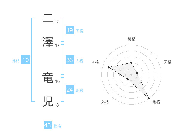 二澤 竜児さんを姓名の画数から五運を鑑定