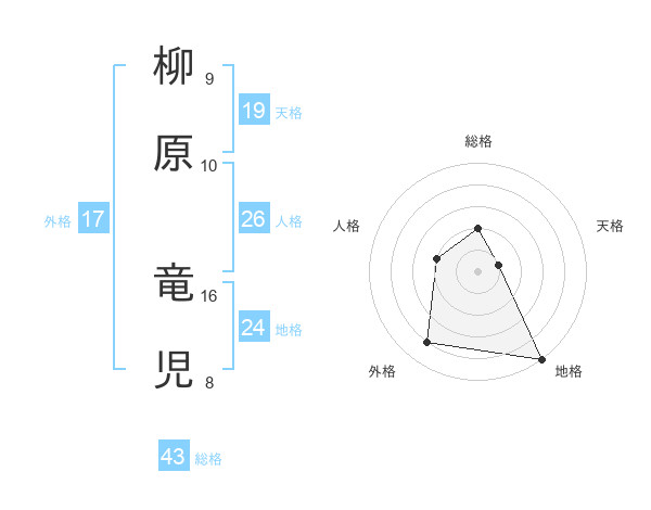柳原 竜児さんを姓名の画数から五運を鑑定