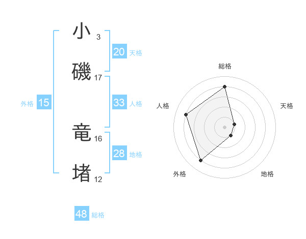 小磯 竜堵さんを姓名の画数から五運を鑑定