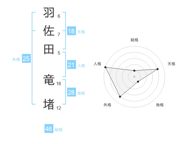 羽佐田 竜堵さんの名前の鑑定結果は!