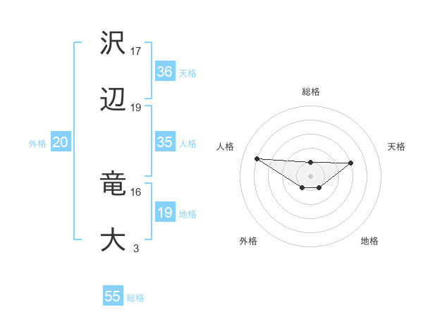 沢辺 竜大さんの総格は55画の1点!