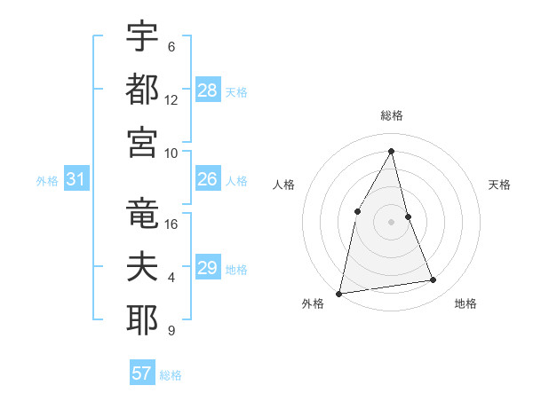 宇都宮 竜夫耶さんの外格は31画の5点!
