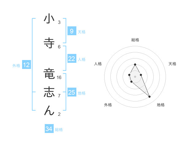 小寺 竜志んさんを姓名の画数から五運を鑑定