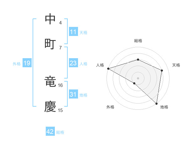 中町 竜慶さんを姓名の画数から五運を鑑定