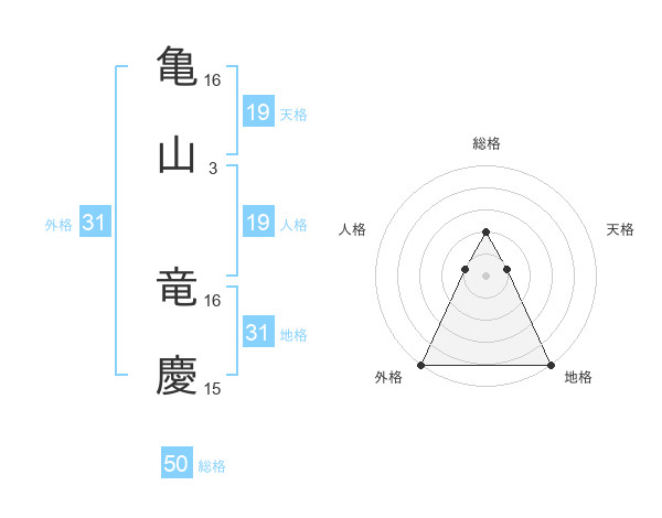 亀山 竜慶さんを姓名の画数から五運を鑑定