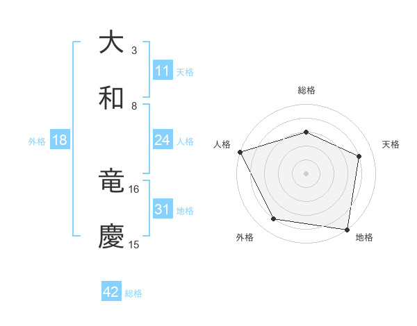 大和 竜慶さんを姓名の画数から五運を鑑定