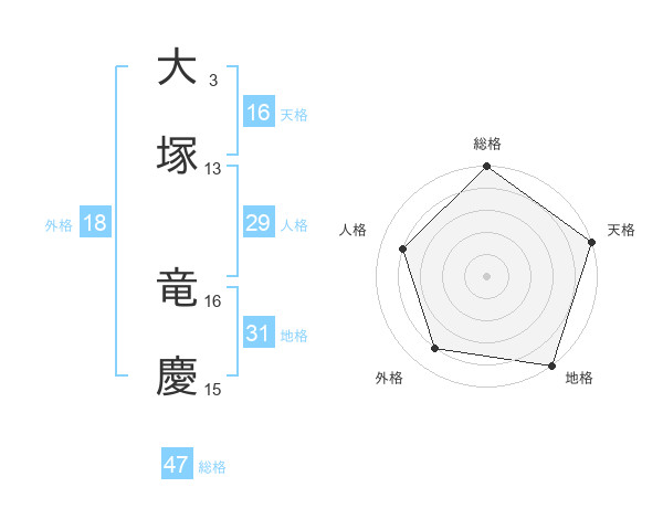 大塚 竜慶さんの総格は47画の5点!