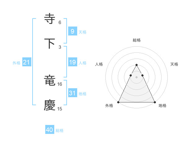 寺下 竜慶さんを姓名の画数から五運を鑑定
