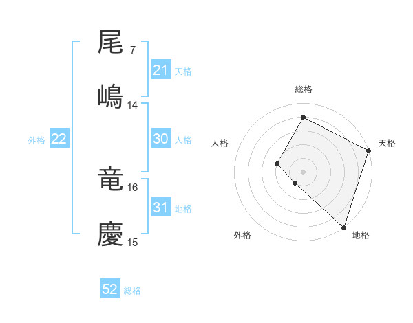 尾嶋 竜慶さんの総格は52画の4点!
