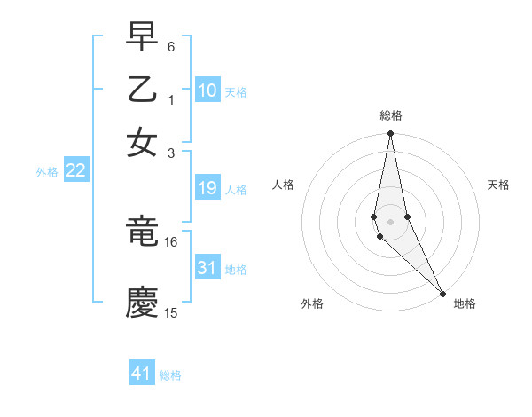 早乙女 竜慶さんを姓名の画数から五運を鑑定